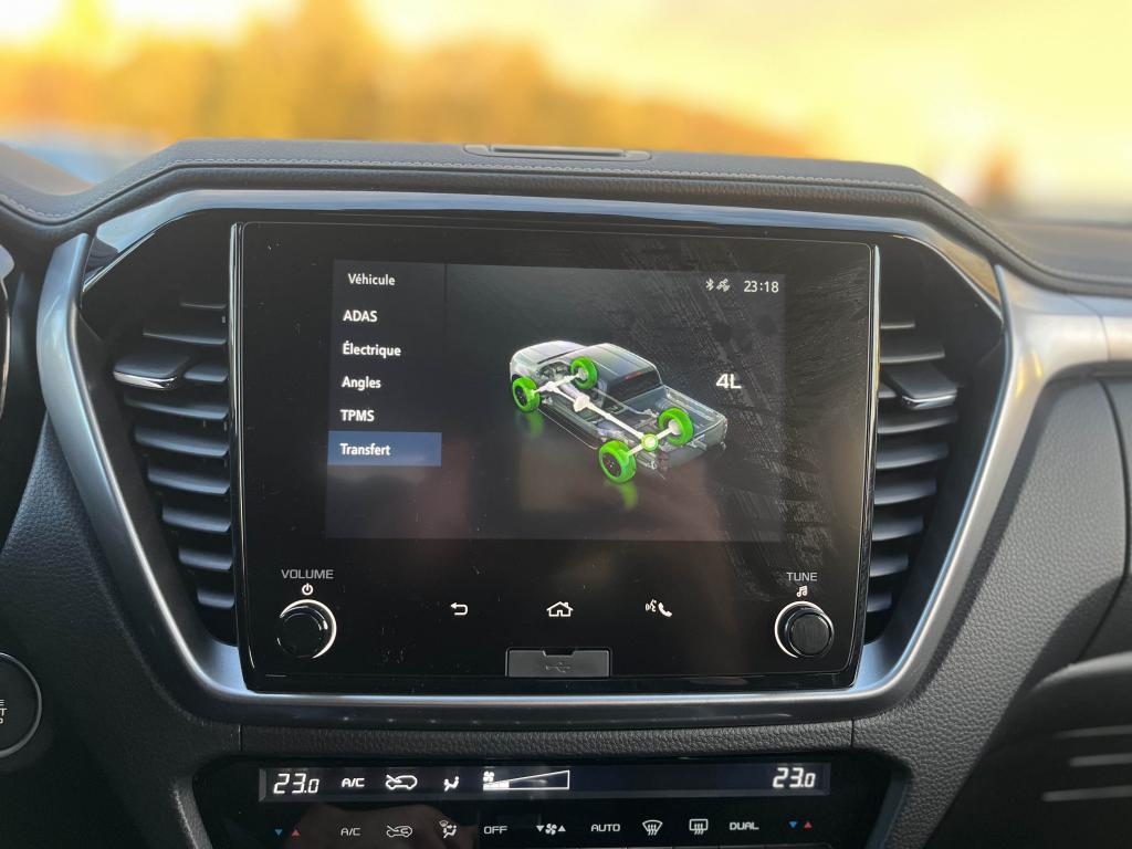 8 AirbagsAide au démarrage en côte (HAC)Aide au stationnement avant/arrièreAlarme antivolAlerte et prévention de franchissement de ligneAllumage automatique des feux de route (AHB)Allumage automatique des projecteursAndroid Auto et Apple Carplay sans filAppel d'urgence - EcallAssistance au virage en carrefour (ITA)Assistant de conduite en embouteillageAssistant de vitesse intelligent (ISA)Blocage de différentiel mécanique arrièreBluetoothBouton de frein à main chroméCalandre avant bicolor gris foncé métallisé/chroméCaméra de reculCarte et navigationClimatisation automatique bi-zoneCombiné des instruments avec enjoliveursCommandes au volantCompteur numérique 7’’Contrôle électronique de stabilité (ESC)Contrôle de traction électronique (TCS)Désactivation de l'airbag du passager avantDétecteur de fatigueDirection assistée électriqueEclairage d'accompagnement "Follow me Home"Ecran tactile 8''Essuie-glace à déclenchement automatiqueFermeture automatique des portesFeux antibrouillard arrièreFinition boutons de lève-vitre chromé satinéFinitions intérieures Design Origami MiuraFreinage d'urgence autonome (AEB)Freinage d’urgence en marche arrièreGicleur lave-glace sur support balaisGrille d'aération ARHaut-parleurs dans les portes avantHaut-parleurs plafonniersJantes alliage 18" MachiningLevier de vitesse en cuir avec enjoliveurLimiteur de vitesse intelligentLimiteur de vitesse manuelLimiteur de vitesse réglable (60-180 km/h)LKAS (système d'assistance au maintien dans la voie de circulation)Lunette arrière dégivranteMaintien dans la voie d'urgence (ELK)Marchepieds couleur argentMirrorLink et MiracastMolette 4x4 noir brillant avec enjoliveur chroméOrdinateur de bord couleur 7''Pare-brise athermiquePare-chocs arrière intégré et couleur carrosseriePare-chocs avant couleur carrosseriePhares arrière LED Dual SonicPhares Bi-LEDPoignée d'accès cabinePoignée de hayon avec serrure chroméPoignées de portes chroméesPrise AUXPrise USB-CProjecteurs antibrouillard à LEDRéception radio numérique DAB+Réduction d'accélération involotaire (MAM)Réglage des lombaires du côté conducteurRégulateur de vitesse adaptatif intelligent (i-ACC)Rétroviseur extérieurs rabattables électriquementRétroviseurs électriques chauffantsRétroviseurs extérieurs électriquesRétroviseurs extérieurs avec rappel de clignotantRétroviseurs extérieurs bi-color chromé/noirRough Terrain System (Le system de gestion du terrain)Siège conducteur à réglages électriques 8 directionsSièges avant chauffantsSièges en cuir E-TechSignal de freinage d’urgenceSystème antiblocage des roues (ABS)Système anticollisions RBS (Radar Brake System)Système d'éclairage de bienvenueSystème d'alerte de circulation transversale arrière (RCTA)Système d'avertissement anticollision frontaleSystème de contrôle de la descente (HDC)Système de démarrage avec clé à proximitéSystème de détection d'angle mortSystème de reconnaissance des panneaux de signalisation TSR (Traffic Sign recognition)Système Stop & StartTableau de bord Deluxe avec espace de rangement centrale et coutures à bueTweetersVerrouillage à distanceVolant en cuir avec enjoliveurVolant réglable en hauteur et en profondeurWi-Fi intégré